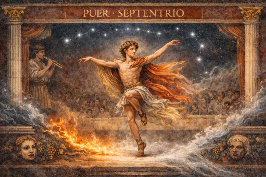 Mais dans le cas du puer Septentrio d’Antipolis, le nom a peut-être une autre origine. Ce jeune esclave est une propriété privée, il n’a pas d’état civil, pas de parents, pas de nom de famille. On l’appelle juste Septentrio. Or à cette époque, tout l’Empire romain a en mémoire un grand artiste populaire, admiré pour ses talents scéniques, véritable pop star sous le règne de Commode (180-192) : un certain Marcus Aurelius Agilius Septentrio. C’était un ancien esclave, mais il a vécu assez longtemps pour être affranchi (comme l’indique son nom composé), et son immense succès est attesté par de nombreuses inscriptions honorifiques. Il est donc possible que notre jeune esclave ait été dirigé très tôt vers les arts du spectacle, sans doute pour ses talents naturels, et qu’on lui ait donné le nom de ce danseur célèbre pour lui porter bonheur.