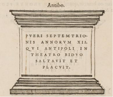 Revenons à ce que raconte la stèle. L’enfant est mort à 12 ans, mais on ne sait pas de quoi, et on ne sait pas quand il a dansé avec tant de succès… C’est une inscription extrêmement rare, je crois unique (elle est célèbre dans le monde des inscriptions latine), mais elle révèle en fait très peu de choses ! Et ça fait 500 ans qu’on essaie de lire entre les lignes.